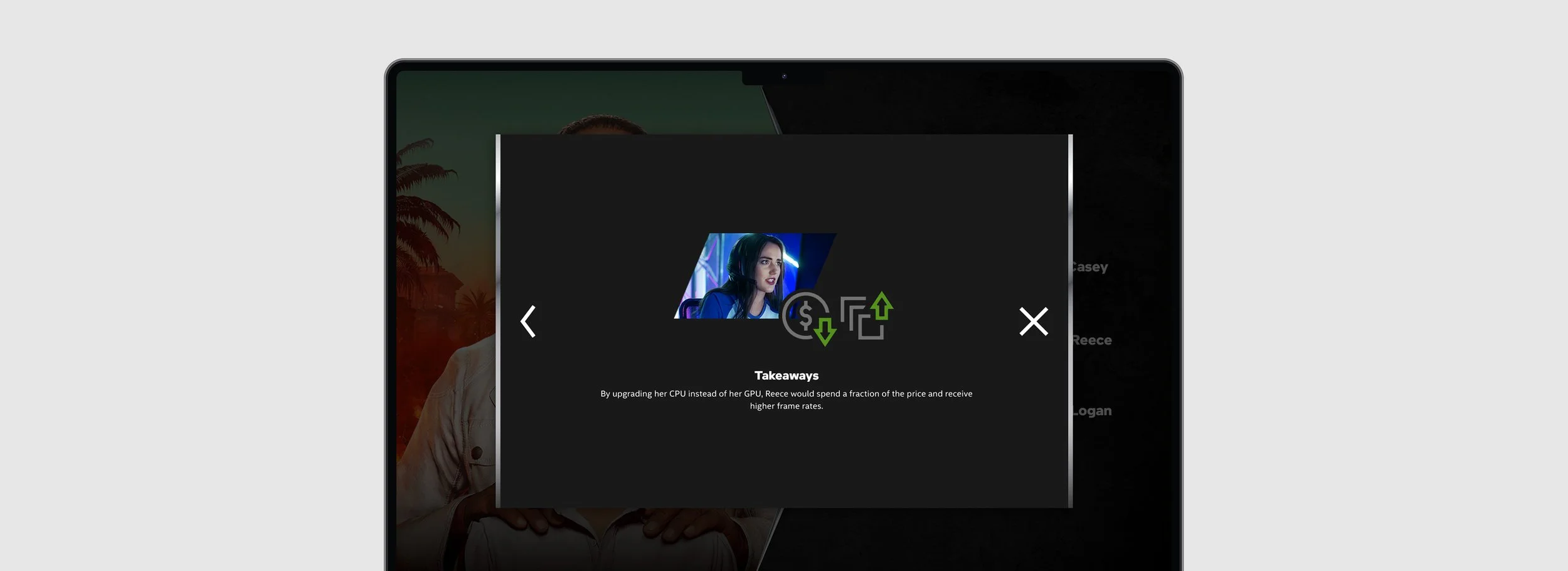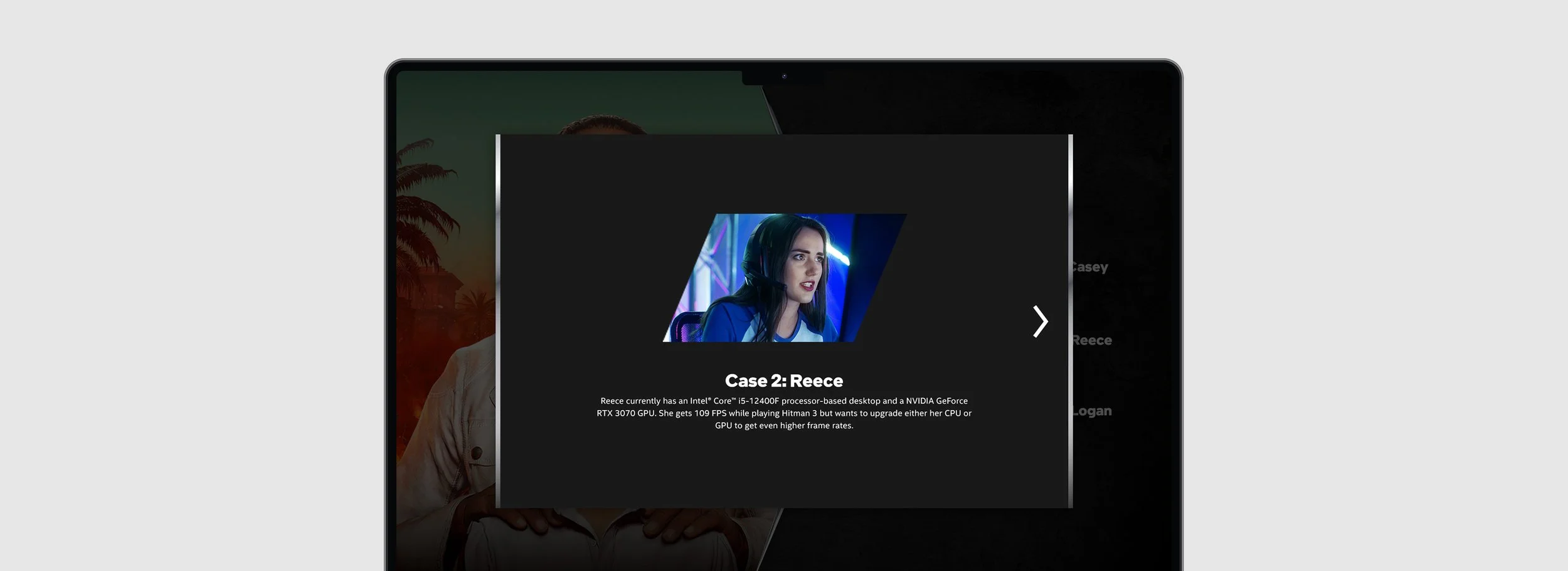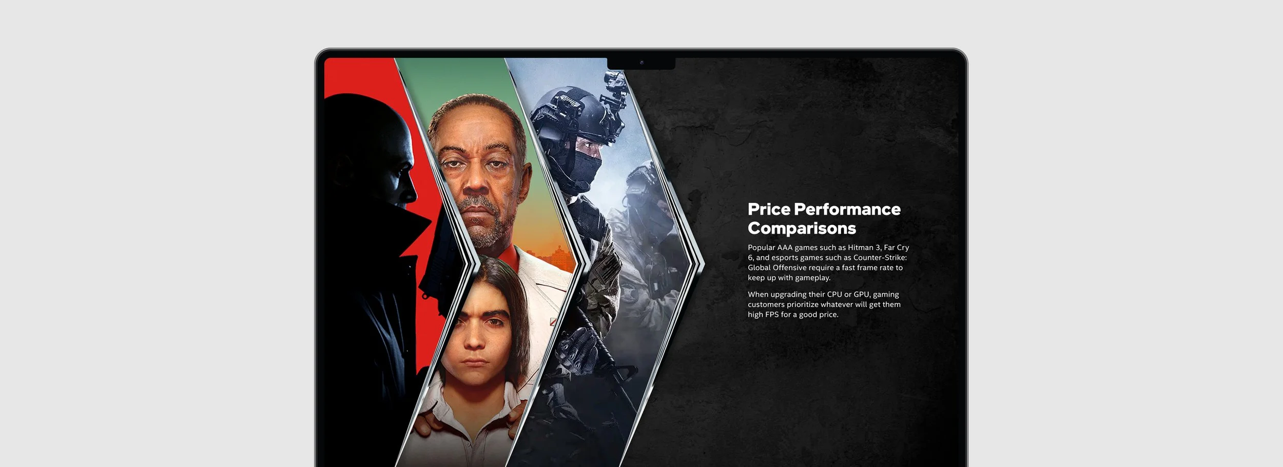 An interactive website designed to educate sales associates on the CPU and GPU advantages of Intel powered computers geared towards gamers.
